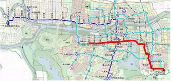 安庆地铁2号线:起自城北客运站,途经潜江路、菱湖南路、德宽路、海口镇及皖河农场,止于规划的安庆新港区。