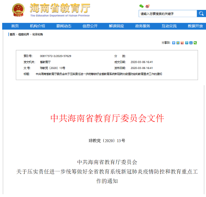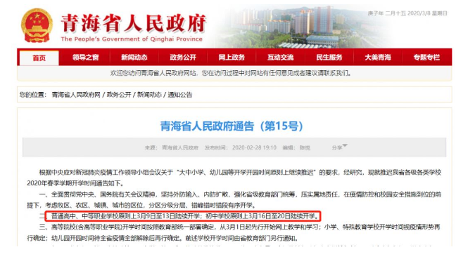 具体开学时间,省委省政府将根据疫情防控情况科学研判后适时公布。