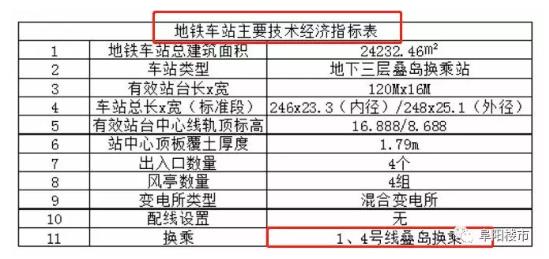 其中有一项最重要的信息,地铁车站指标,其中地铁1号线和地铁4号线的叠岛换乘很明显的出现在此次公示中,为阜阳地铁建设落下实锤!